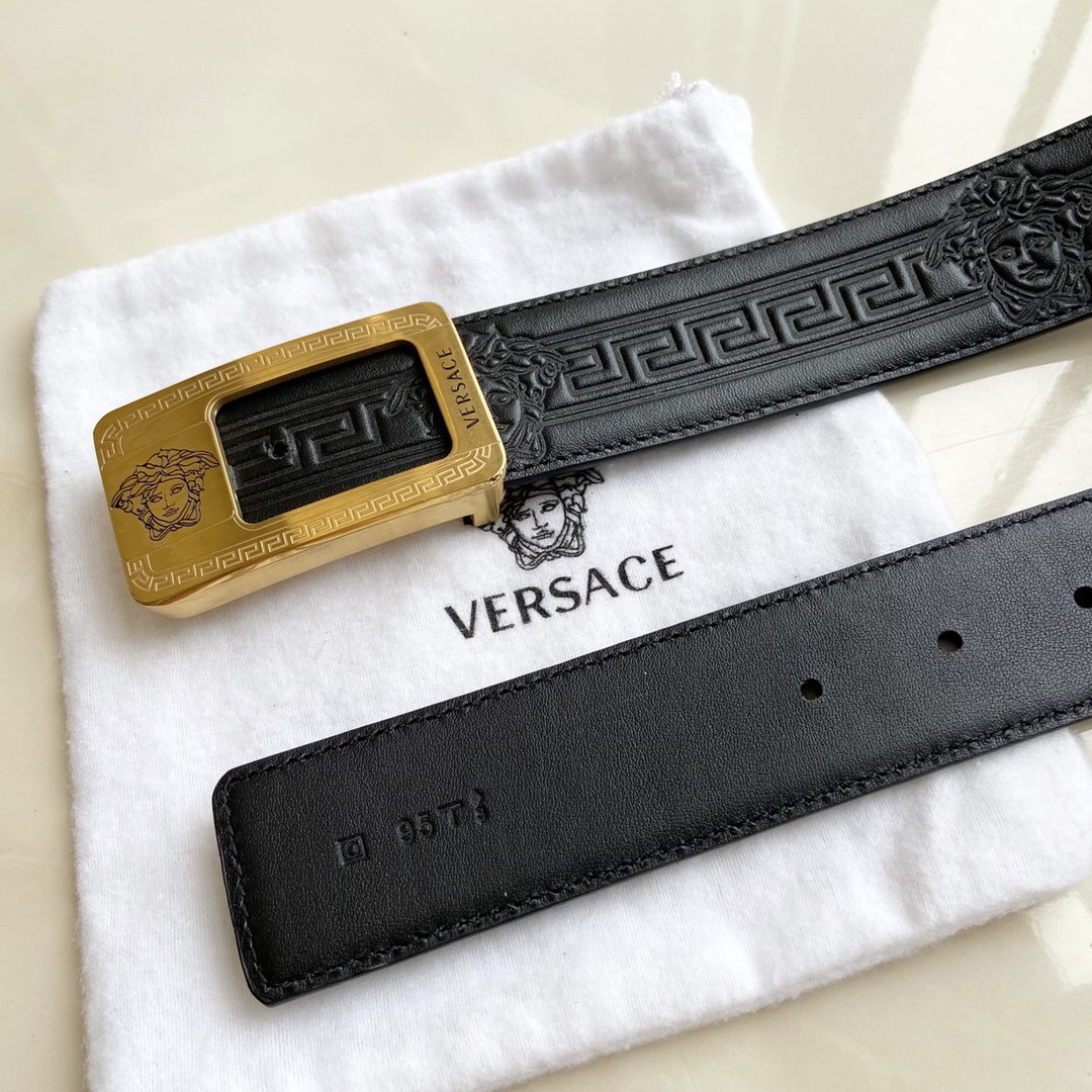 Versace’s Greca embossed belt features an eye-catching Medusa buckle, adding a touch of three-dimensional elegance to any look. 4.0cm wide D