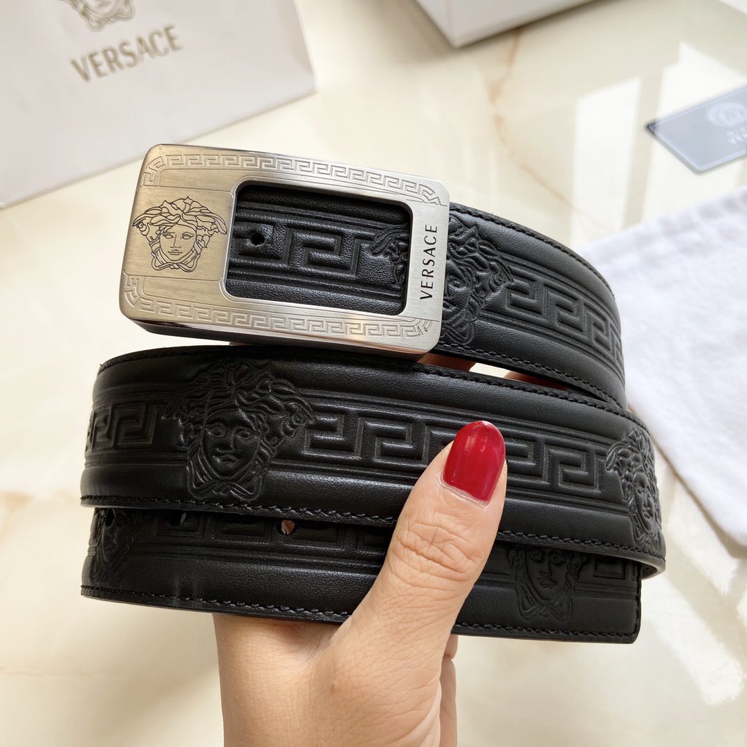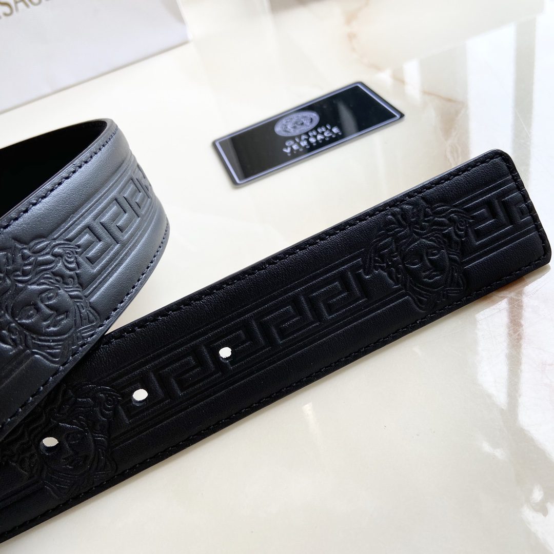 Versace’s Greca embossed belt features an eye-catching Medusa buckle, adding a touch of three-dimensional elegance to any look. 4.0cm wide D