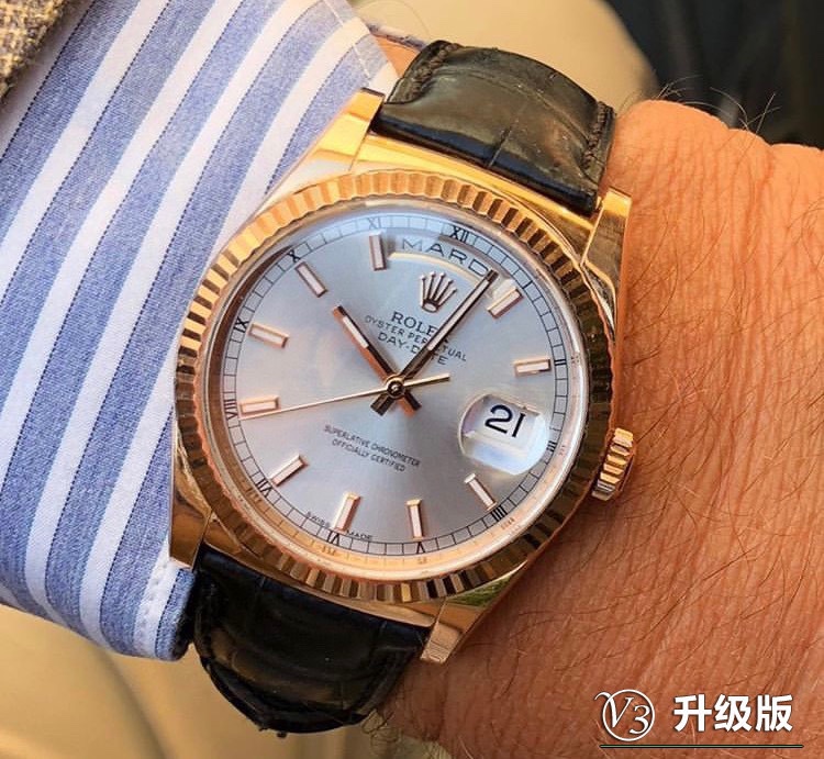 v] Side: The side curvature and overall thickness of the case are proportional to the official one. The official synchronized second-degree waterproof mark on the crown, and the QR code on the side is still consistent with the official one! The representative of “Jinlao” is Day-Date, or DD for short, and the official full name is Osyter Perpetual. Day-Date (Oyster Perpetual Day-Date), the earliest DD should be the President series. Because the President of the United States once loved to wear Labor’s all-gold DD, this watch later became famous in one fell swoop. It is also what we call the “Presidential Watch”. Four simple words clearly describe the characteristics of this watch: waterproof, automatic, calendar, and day of the week. Arrival in small quantity, get it quickly!