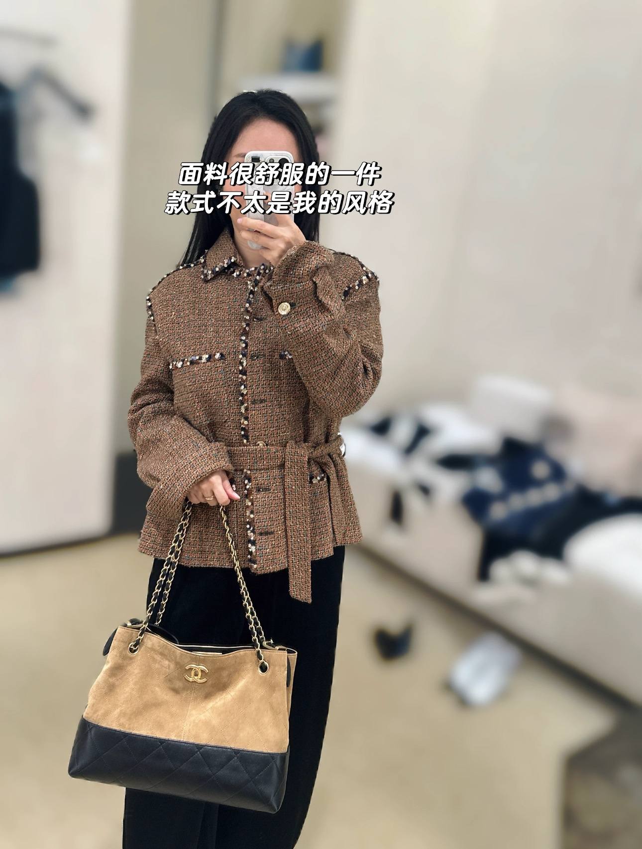 720 Chanel 25K bow-knot woolen fabric has a bow-knot element this season. It touches my girlish heart. The clothes are