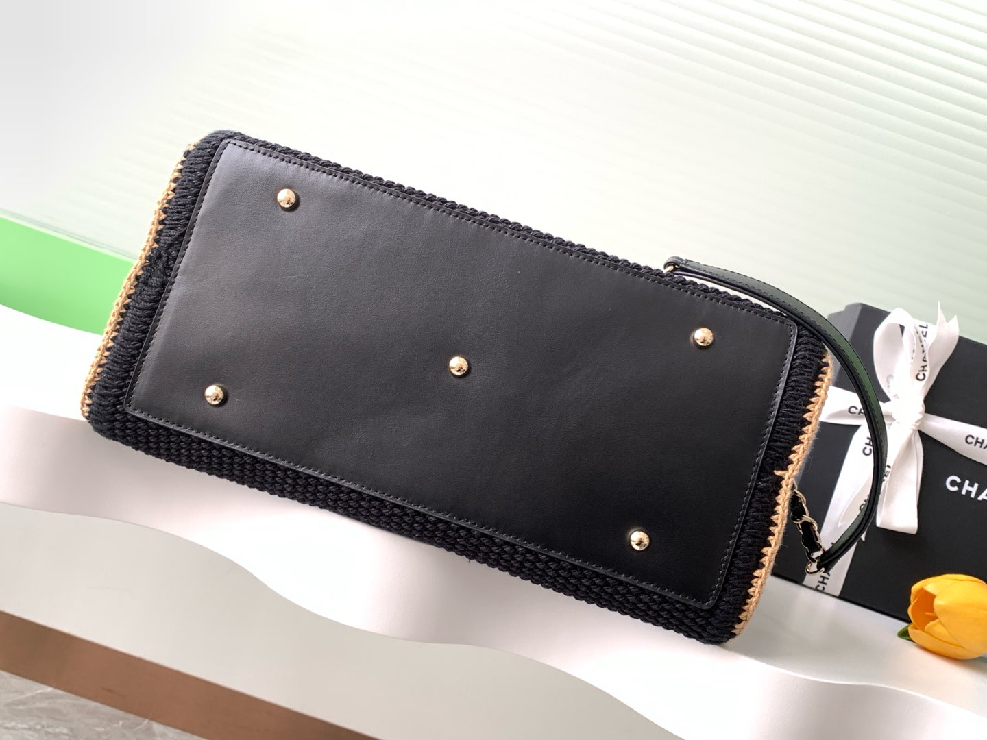 Woven CHANEL beach bag | Romantic summer atmosphere. The unique woven material and fresh color combination~ create a summer atmosphere~ The interweaving of black and apricot is like the soft colors of the beach. It is refreshing and charming. I like this sweet girly style. Size AS7 size 32