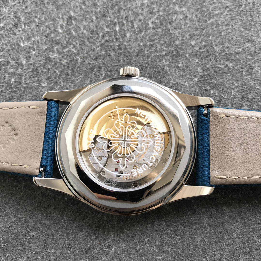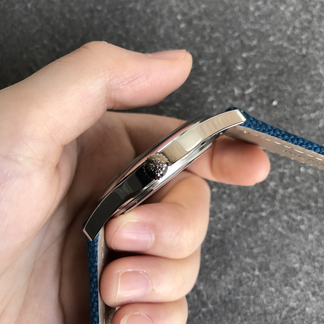 ZF’s elegant work reaches a new peak in steel watches, replicating Patek Philippe’s new product – PP Ref.6007A-00mm.34S custom-made integrated movement, with both simulation and travel time! [Strap Buckle] Grey-blue calfskin strap, decorated with white stitching, matched with PP classic pin buckle, the design and the color of the dial complement each other! Produced by ZF – Create the strongest steel watch on the planet!