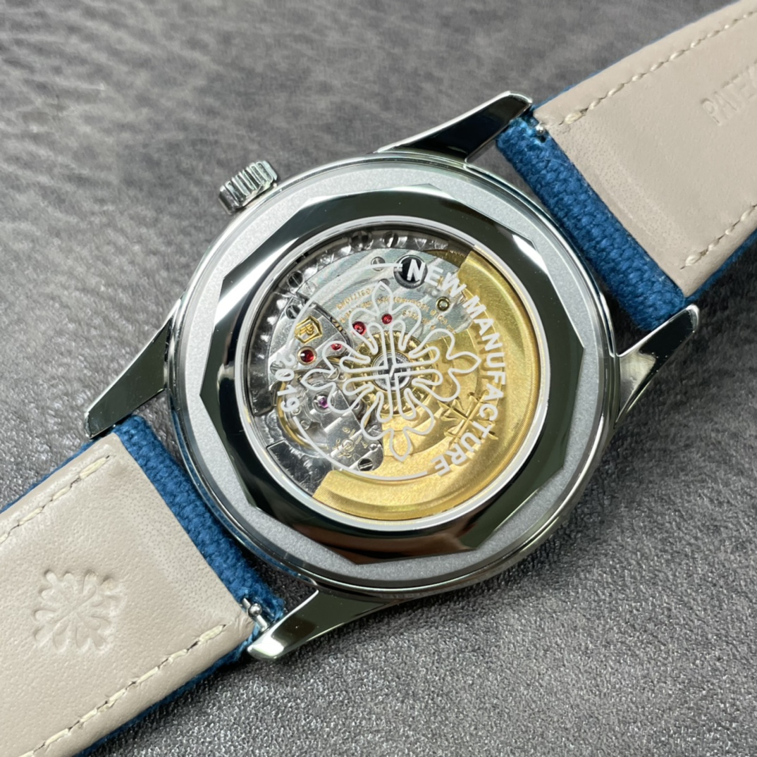 ZF’s elegant work reaches a new peak in steel watches, replicating Patek Philippe’s new product – PP Ref.6007A-00mm.34S custom-made integrated movement, with both simulation and travel time! [Strap Buckle] Grey-blue calfskin strap, decorated with white stitching, matched with PP classic pin buckle, the design and the color of the dial complement each other! Produced by ZF – Create the strongest steel watch on the planet! Real shots of shipment